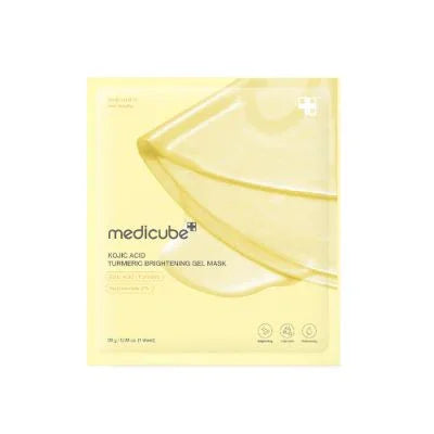 MEDICUBE Kojic Acid Turmeric Brightening Gel Mask features a cooling, jelly-like formula enriched with Kojic Acid, Niacinamide, and Turmeric Root Extract to help brighten and even the appearance of skin tone.